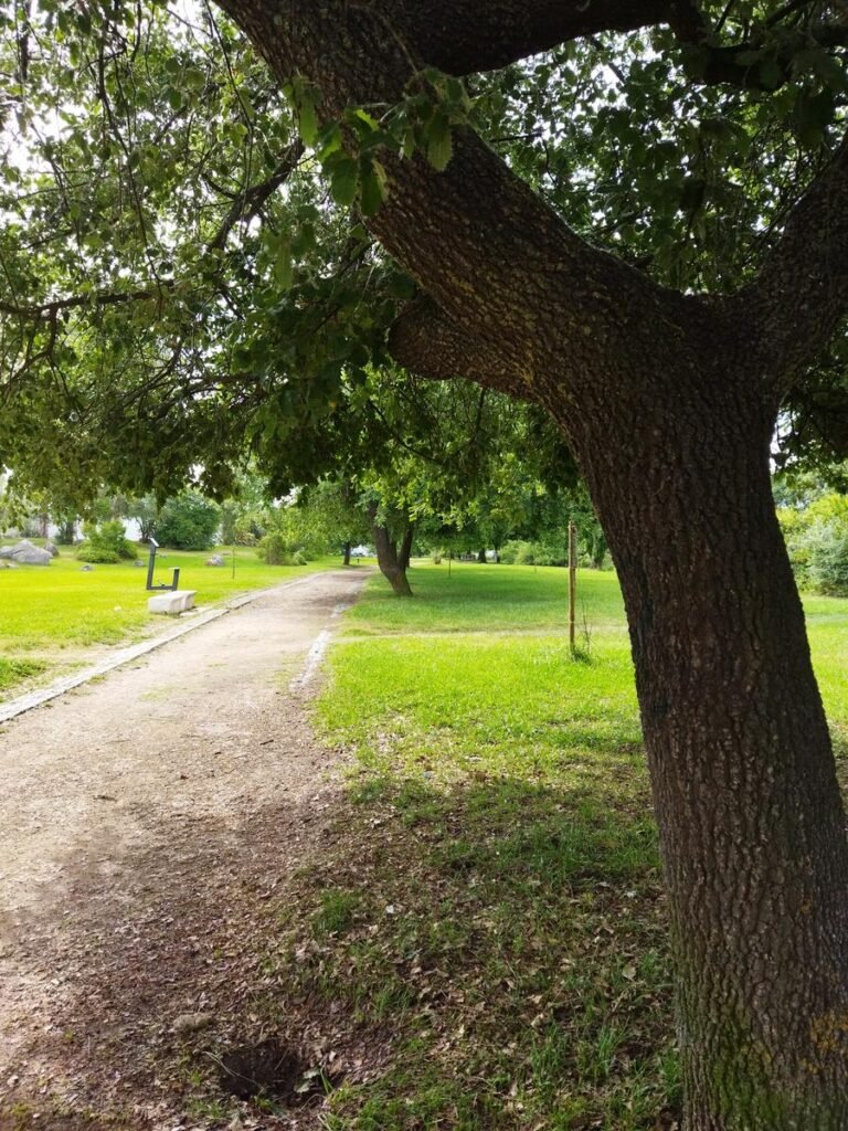 Neste troço da Ribeira da Torregela, na envolvente do Bairro do Moinho, seguindo por entre Oliveiras (Olea europaea) e Olaias (Cercis siliquastrum) encontramos as copas baixas do Salgueiro-chorão (Salix babylonica) que nos convidam a uma experiência sensual.