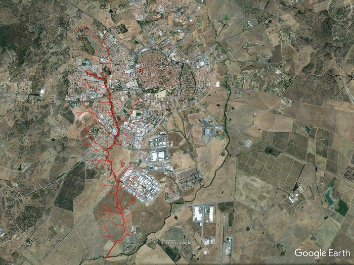 A sua rede hídrica e o percurso da água foram sendo alterados ao longo do tempo pelo desenvolvimento urbano de Évora.
