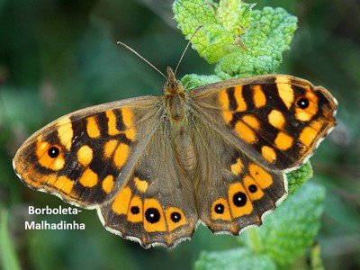 Observou uma pequena borboleta que voa de forma irrequieta, com asas de tons castanhos e alaranjados? É a Borboleta-malhadinha (Pararge aegeria), uma espécie muito territorial, que gosta de locais sombrios e húmidos, como a nossa ribeira.